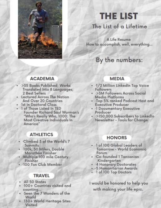 As a little boy, I was obese (particularly a bummer when you consider my last name). I had orthopedic issues and did not have my first pair of Keds until I was twelve. My parents divorced before I was one year-old, and I lived with my single working mom and grandmother. Thus, no playing catch, no riding a bike, not even running. Things had to change, so at age 13 I got into exercise and nutrition and lost 64 pounds, and since I have run ultramarathons, climbed three of the world's Seven Summits, dove the Great Barrier Reef, and completed a number of what I like to call Weirdo Challenges