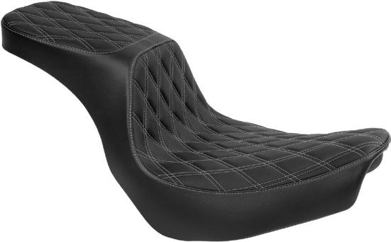 Available in Smooth Solar-Reflective leather, Smooth vinyl and Double Diamond stitch with black, silver or red thread vinyl. See the complete selection at seats.dragspecialties.com.