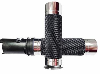 Accutronix Conventional grips are compatible with 19842014 Harley-Davidson models with dual cables, as well as many custom and metric bikes. Grips are made from 6061 T-6 billet aluminum and are available in several finishes including brass, black anodized, chrome plated, polished billet aluminum and the signature Night Series. ■