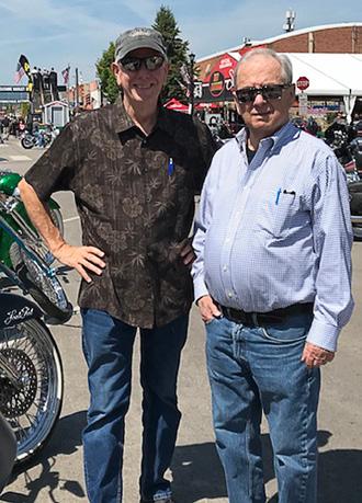 Drag Specialties Magazine publisher Don Emde with Fred at Sturgis in 2018.