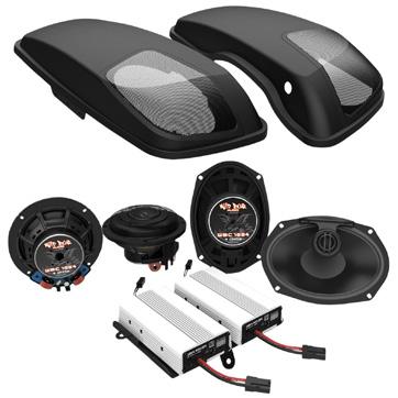 » Complete kits with fairing speakers, saddlebag lids with 6˝ x 9˝ speakers and 2 amps for 800 watts of total power