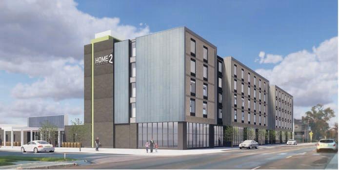progressing ve-story, 124-room Home2 Suites by Hilton hotel on University Ave., south of Cole Hall and Old Main. There will also be room for at least one major restaurant and retail space on the rst oor, according to Ryan Arnold, Drake’s director of community engagement.