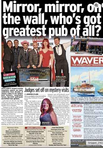 “It was fabulous night! It was well organised; the food was gorgeous and everything about it was just perfect. We’re still trying to come to terms with our win, it was quite a shock to the system! We’ve been continuing the celebrations, and the Sunday Mail Pub of the Year mirror has pride of place - in fact we are moving it to the window above the stage so everyone can see it!”