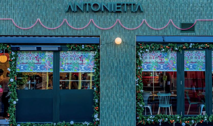 designed to connect with a younger neighbourhood customer. The design is striking, offering seating for up to 140 guests, with contrasting and clashing styles spread across two dining rooms to create a celebratory space that reflects Antonietta’s fun cuisine and lively atmosphere.