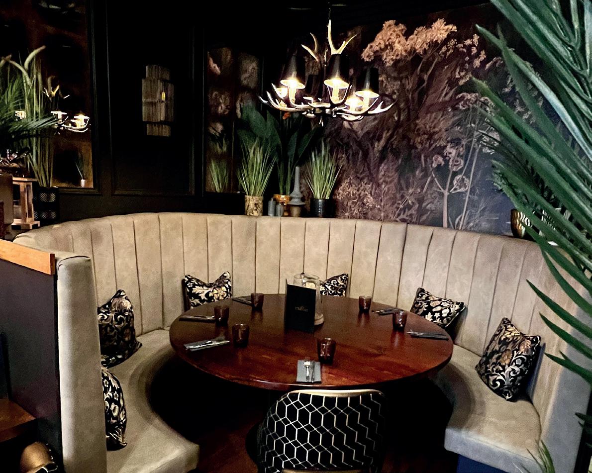 It’s the upholstery here that has the wow factor – it features the jungle complete with Tiger – which also adds to the colonial feel of the venue. But there is a mix of décor here too.