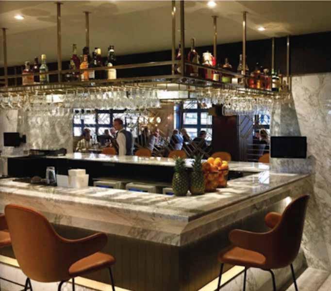 Another striking feature is the illuminated wine fridges which have been built into the walls. There is also a perfectly formed bar located to the back left of the restaurant which has both an metal overhead and rear brass gantry.