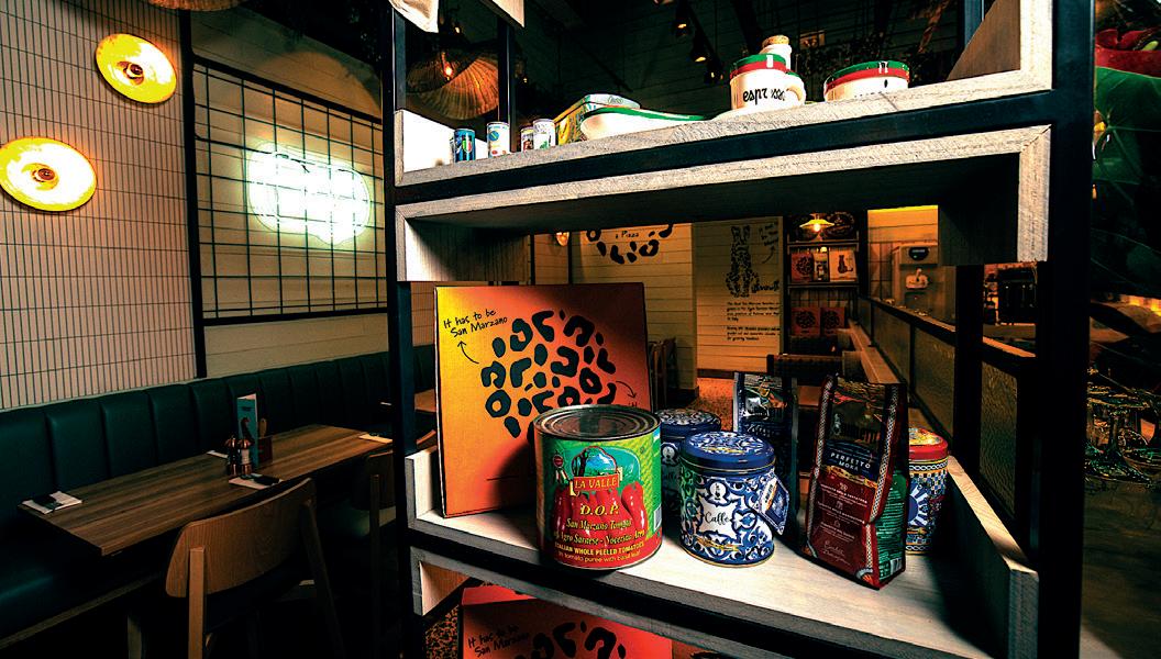 oven, supplied by New Concept, which not only rotates but has been tiled and branded Leopardo. The rotating oven means that pizzas cook quicker and don’t burn. Says Luli, “The kitchen is a masterpiece.”