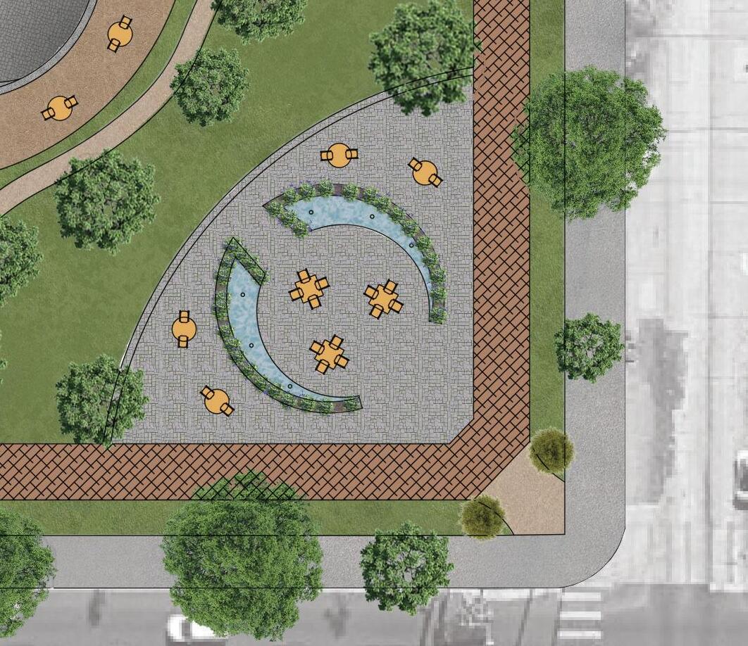 Illustrated site plan of satellite childrens park in partnership with the local library. Civic center public services analysis diagram.