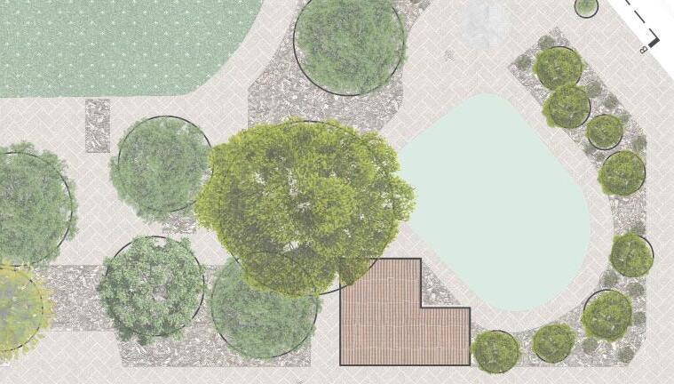 Select a public square to draft in AutoCAD and render in Photoshop. Create sections through the site map to render section views in Photoshop as well.