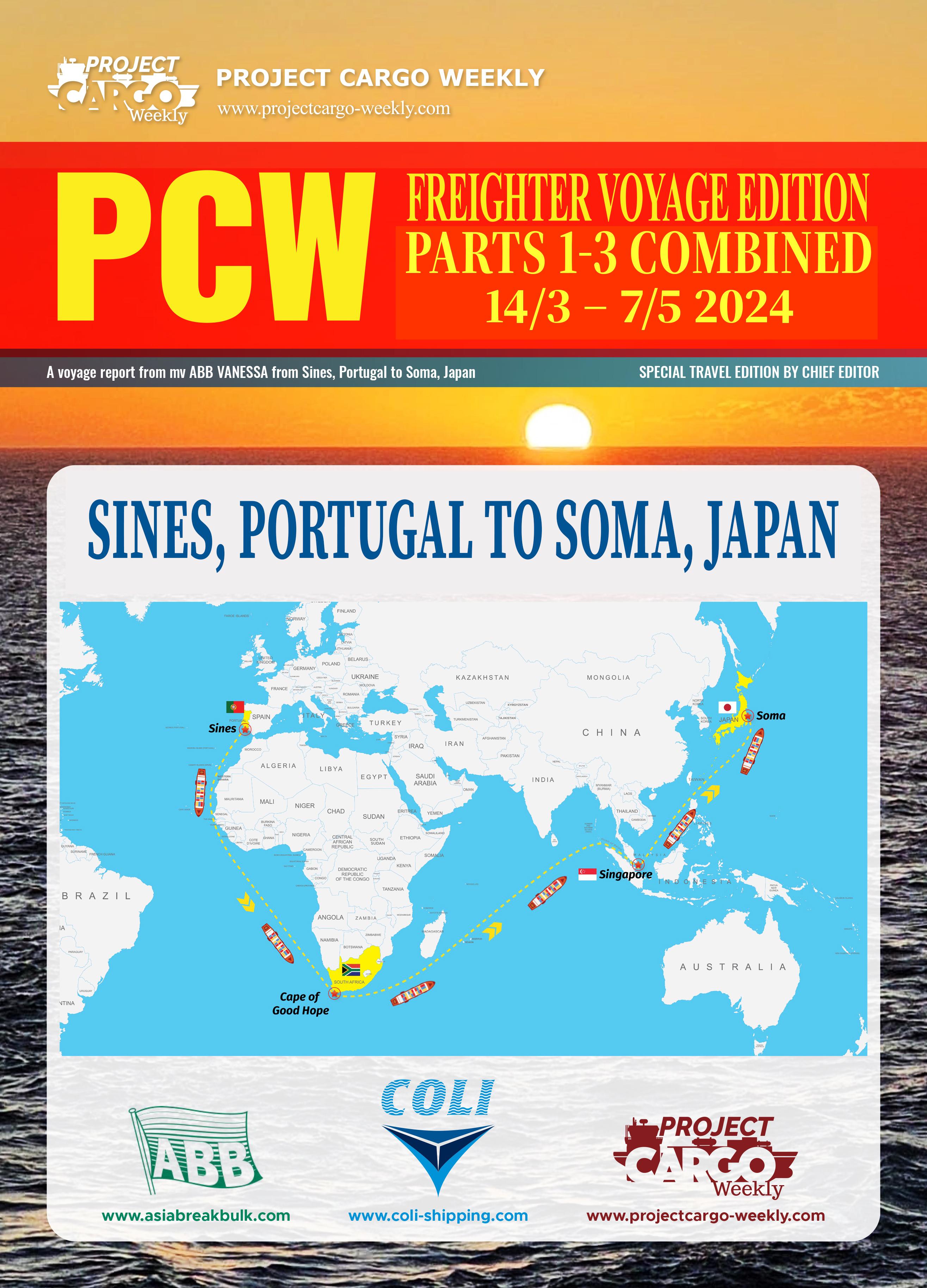 SPECIAL TRAVEL EDITION BY CHIEF EDITOR PROJECT CARGO WEEKLY www.asiabreakbulk.com www.coli-shipping.com www.projectcargo-weekly.com PART ONE ONBOARD ABB VANESSA Part 1 (3) A voyage report from mv ABB VANESSA from Sines, Portugal to Soma, Japan 14/3 - 3/4 - 2024