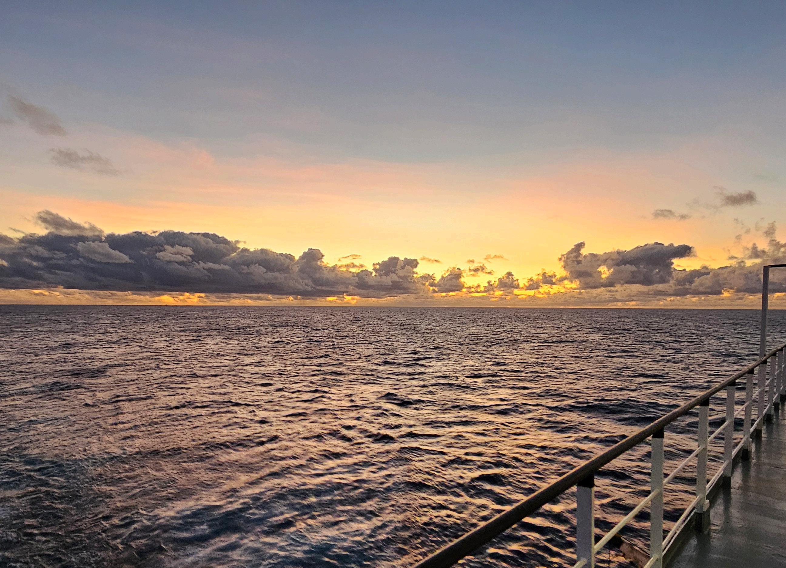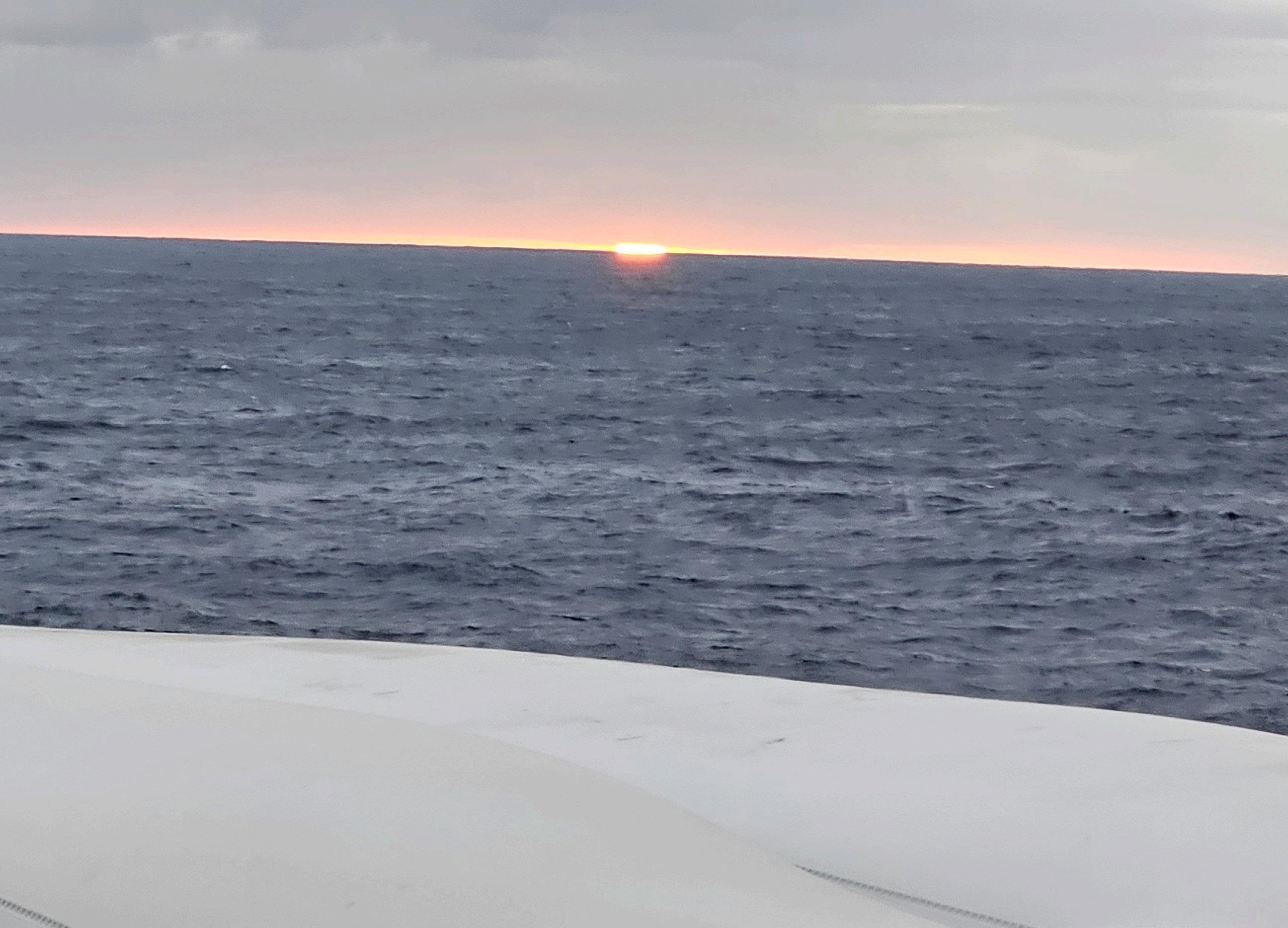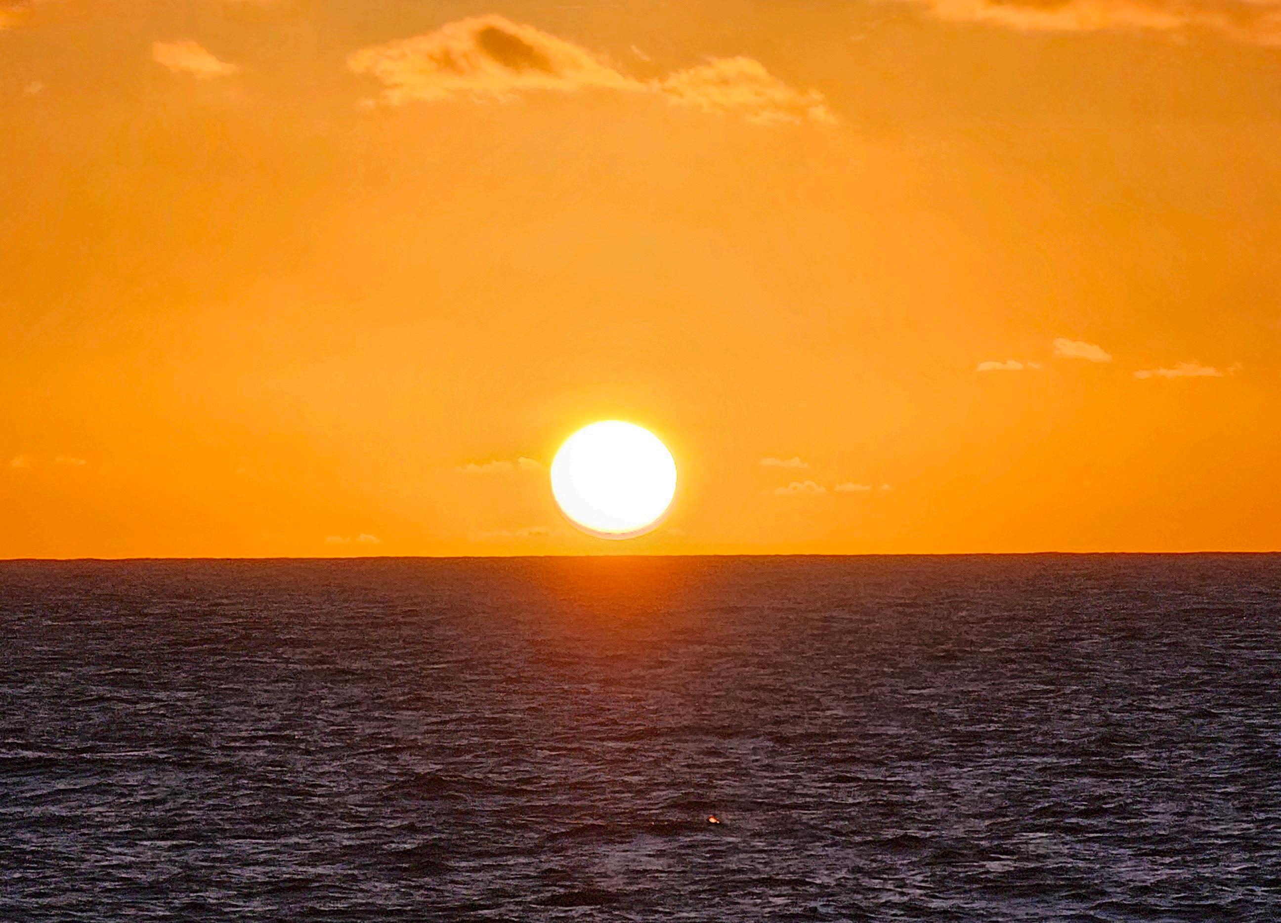 –a valuable perspective on life –learning to appreciate life and the value of missing people, things, etc. –appreciating the time to really read books –valuing not being interrupted neither by room service nor "kids"... so to speak –incredible views of nature as the sky and the ocean change almost daily if not hourly –some of the most spectacular sunsets and sunrises –an incredible light, pollution-free sky, enabling you on a clear day to see the stars –internet only available intermittently such as WhatsApp, etc. and otherwise good old-fashioned email but real surfing is difficult, and that is exactly what I wish to escape!