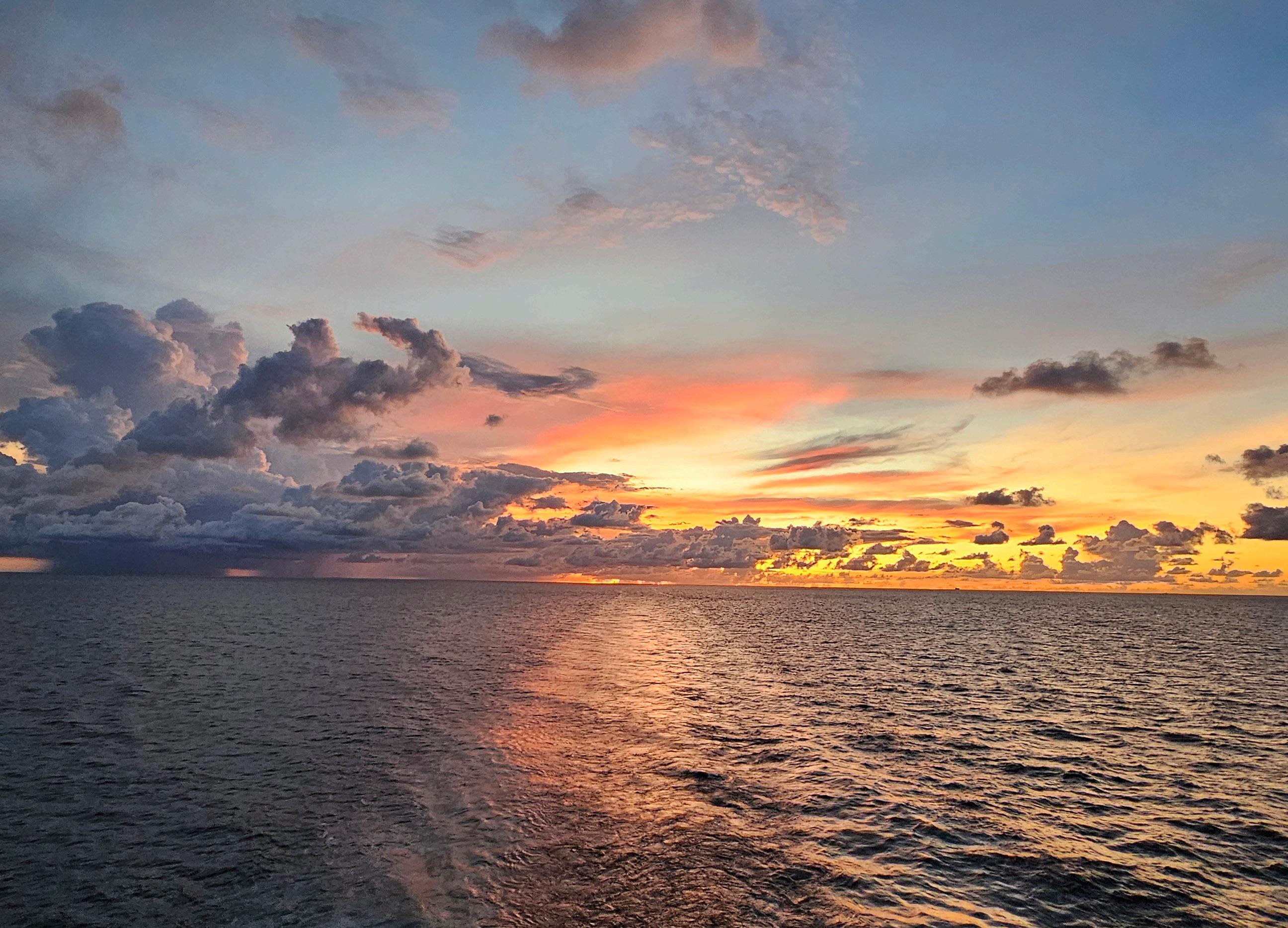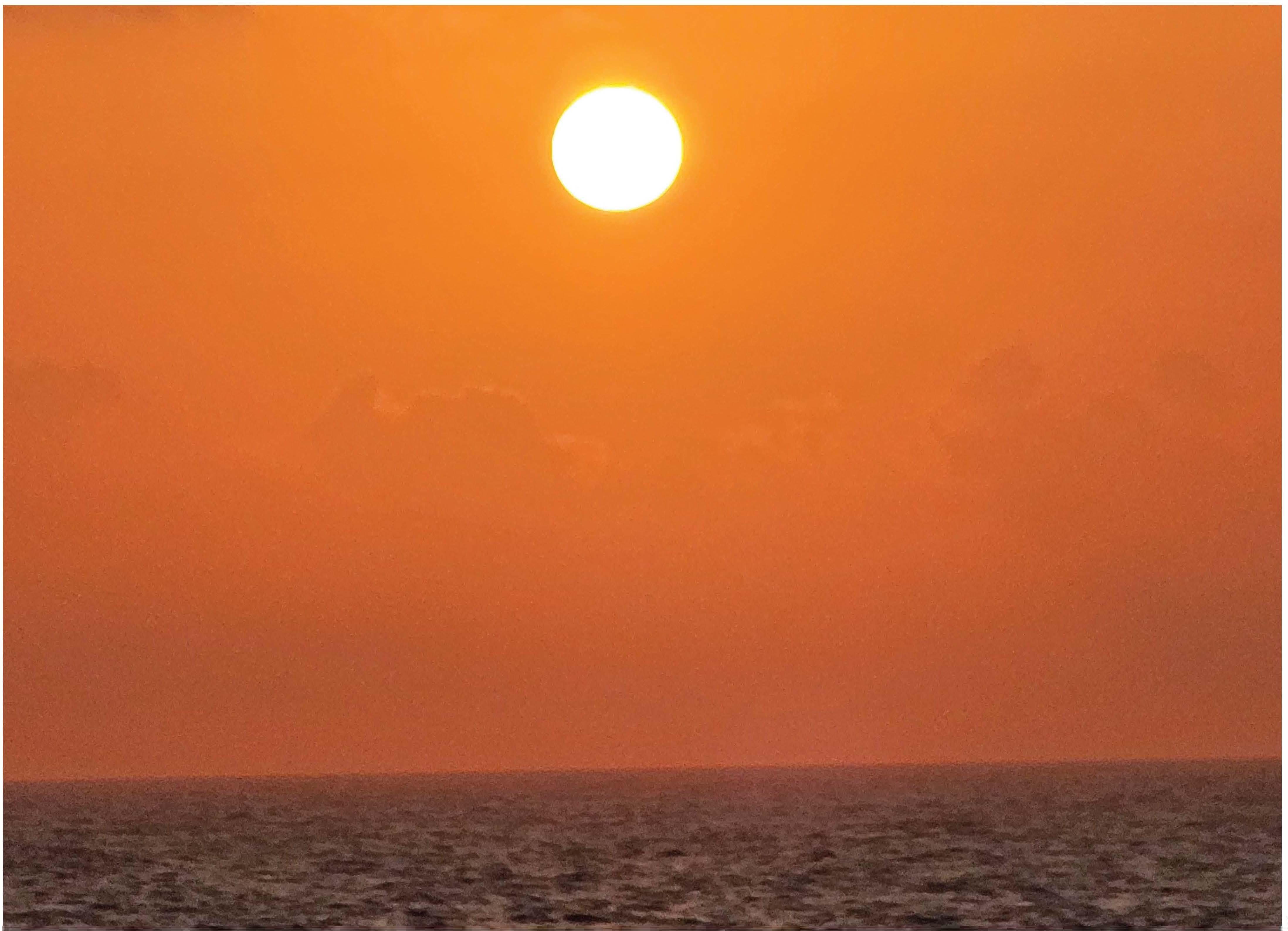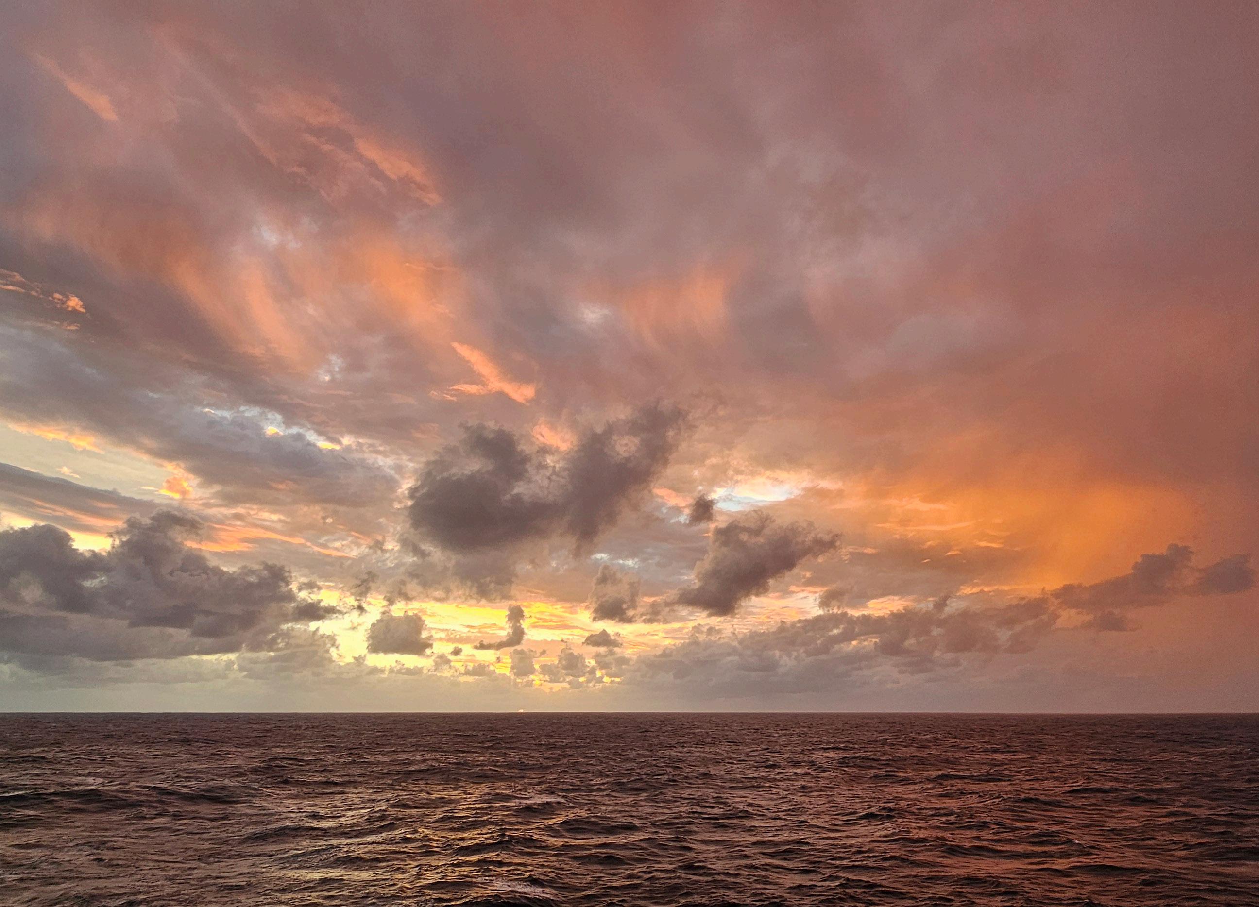 –a valuable perspective on life –learning to appreciate life and the value of missing people, things, etc. –appreciating the time to really read books –valuing not being interrupted neither by room service nor "kids"... so to speak –incredible views of nature as the sky and the ocean change almost daily if not hourly –some of the most spectacular sunsets and sunrises –an incredible light, pollution-free sky, enabling you on a clear day to see the stars –internet only available intermittently such as WhatsApp, etc. and otherwise good old-fashioned email but real surfing is difficult, and that is exactly what I wish to escape!