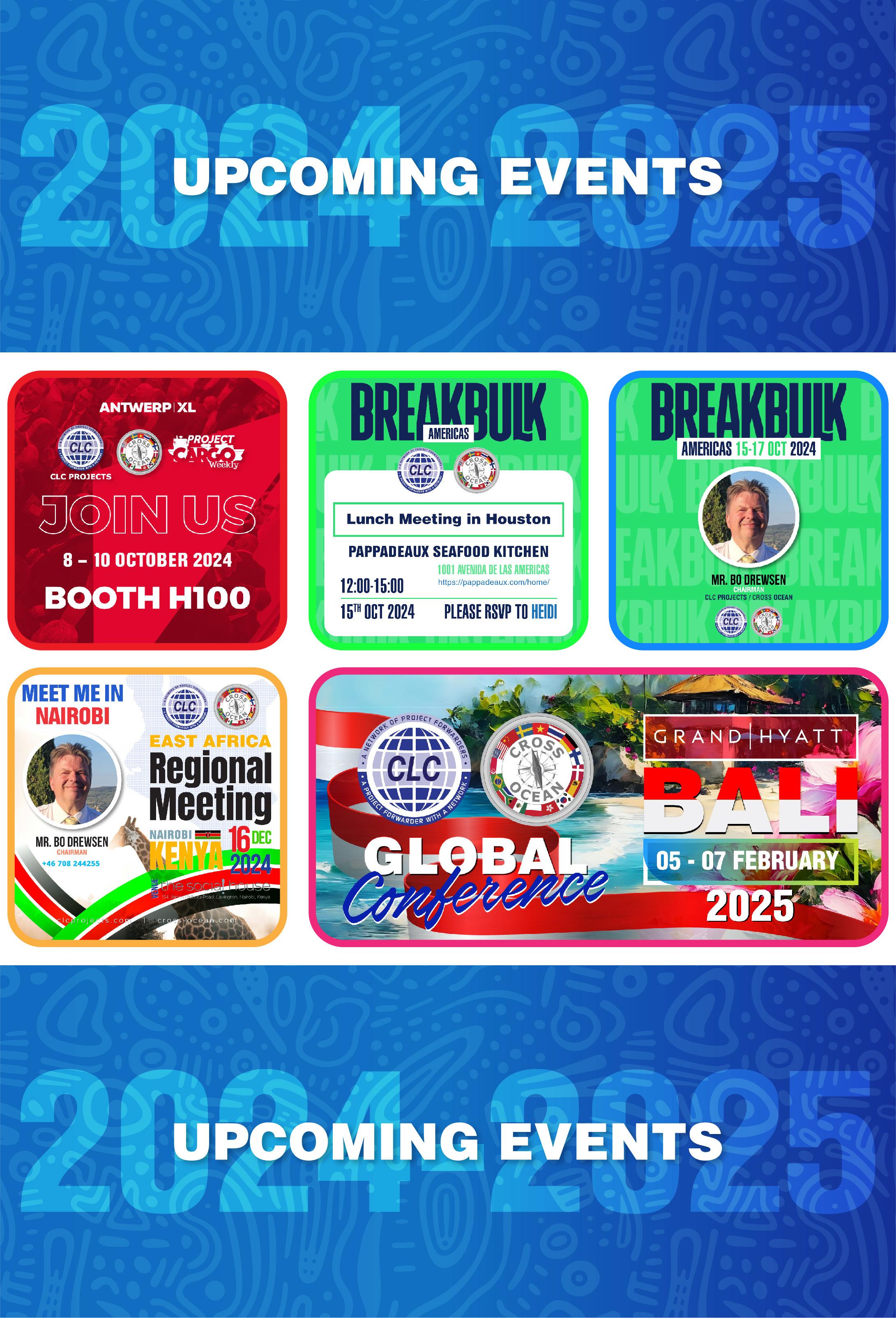 •Breakbulk Americas, Houston, Texas (October 15–17th): Find us at this premier event for the breakbulk and project cargo industry. Let’s connect and explore new business opportunities together.