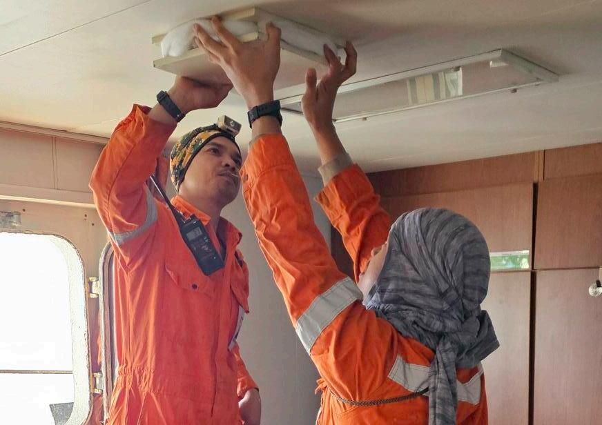 The main questions people always ask are: “Are you not bored onboard? Is there a shopping mall? Do you have internet? How about the food and Are you in a container or in a cabin? (well almost).