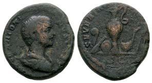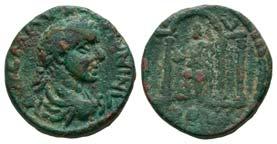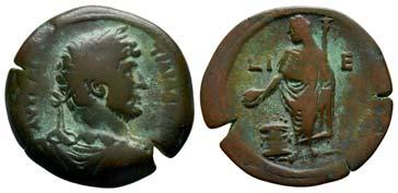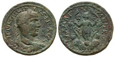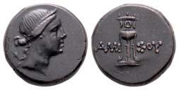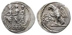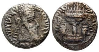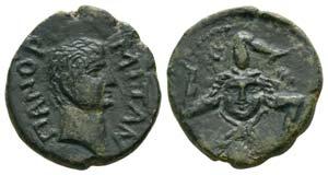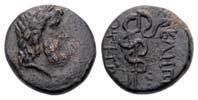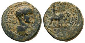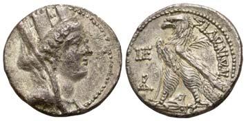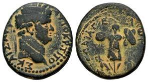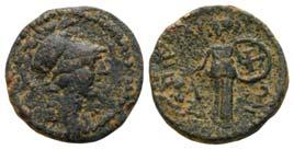 Draped bust of Artemis Soteira to right; quiver over shoulder, ΩTEIPA downwards before / Winged thunderbolt; A A OK EO above, BA I EO below. CNS II, 142; BAR Issue 33; SNG ANS 708; HGC 2, 1537. 8.38gr, 22mm, 5h. Very Fine. Green patina. [No Reserve] £40 - 60