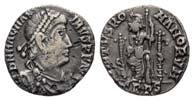 2891 Calabria, Tarentum AR Nomos. Circa 344-340 BC. Warrior, nude but for helmet, standing facing behind bridled horse to left, holding spear and shield with right hand and resting left on horse’s back; |- to right / Taras astride dolphin to left, holding trident in extended right hand, and shield in left; TAPA behind, A over waves below. Vlasto 516-18; HN Italy 889; SNG ANS 693. 7.13gr, 22mm, 10h. Near Very Fine. [No Reserve] £40 - 60