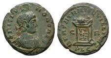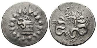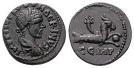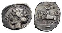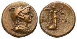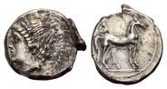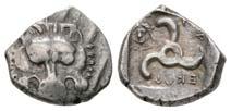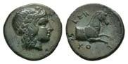 Wreathed head of Arethusa to left; [ YPAKO] IΩN upwards before, bucranium behind / Bull butting to left, Ω above. CNS II, 106; HGC 2, 1489. 3.22gr, 18mm, 10h. Very Fine. Nice green patina. [No Reserve] £20 - 30