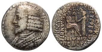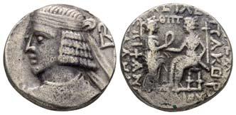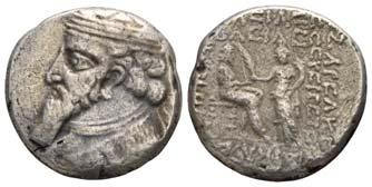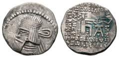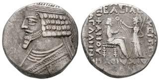 2901 Kingdom of Macedon, Time of Alexander III - Philip III Arrhidaios AR Tetradrachm. Circa 324-320 BC. Tyre mint. Uncertain RY of ‘Ozmilk. Head of Herakles to right, wearing lion skin headdress, paws tied beneath chin / , Zeus seated to left on backless throne, right leg drawn back, his feet resting on a low foot rest, holding long sceptre in his left hand and, in his right, eagle standing to right with closed wings; -|O (Phoenician ‘K = ‘Ozmilk [king of Tyre]) and uncertain date in Phoenician in left field. Cf. Price 3279 (Ake; RY 30). 16.93gr, 27mm, 12h. Very Fine. £250 - 350