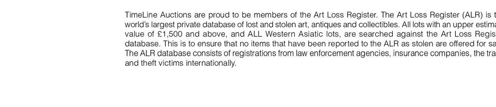 ALR – Art Loss Register - All lots with an upper Estimate value of £1,500 and above and all ancient Western Asiatic lots are searched against the Art Loss Register database.