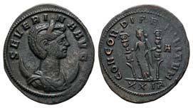 2890 Apulia, Luceria AE Quadrunx. Circa 211-200 BC. Head of Herakles to right, wearing lion skin headdress; four pellets (mark of value) downwards behind / Quiver, club and bow; LOVCERI beneath club. HN Italy 679; SNG ANS 704-5; HGC 1, 608. 14.45gr, 24mm, 2h. Near Extremely Fine. Rare. [No Reserve] £150 - 200