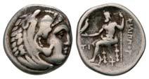 ‘Kolophon’ mint. In the name and types of Alexander III. Struck circa 310-301 BC. Head of Herakles to right, wearing lion skin headdress, paws tied beneath chin / [ ], Zeus seated to left on backless throne, right leg drawn back, his feet resting on a low foot rest, holding long sceptre in his left hand and, in his right, eagle standing to right with closed wings; N to left, B beneath throne. Price 1800. 4.09gr, 17mm, 12h. Near Very Fine. [No Reserve] £40 - 60