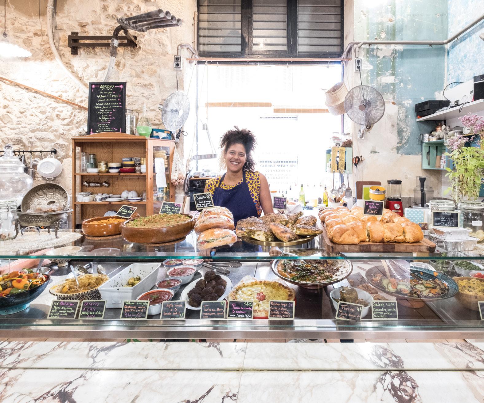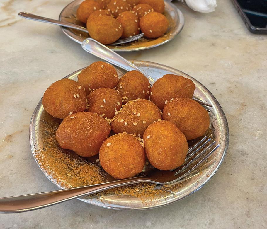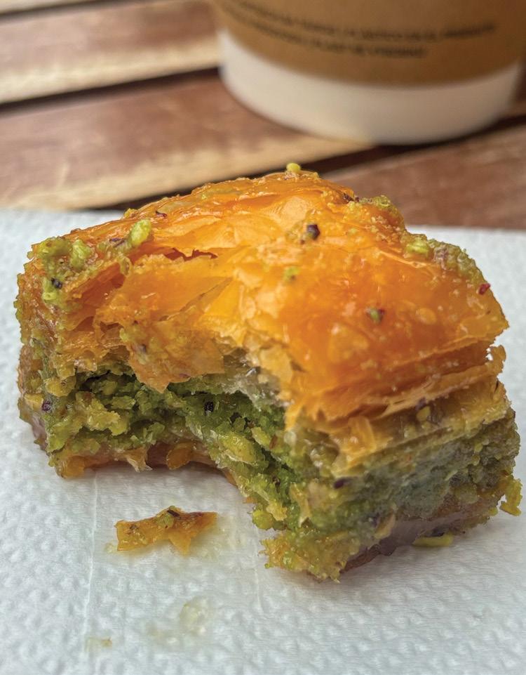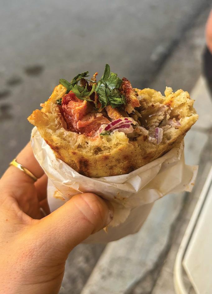 We stop for lunch at a hawawshi (Egyptian sandwich) shop, which in typical downtown Cairo fashion reveals itself to be anything but just a simple sandwich shop. It is also a vinyl record shop and, in the back space of the building, a sustainability-focused fashion atelier where young, punkish Egyptians sew the clothes in front of you. It’s also home to the best falafel sandwich I’ve ever had in my life, slathered in zesty tahini sauce and generously topped with pomegranate seeds that look like the kind of rubies you see behind glass.