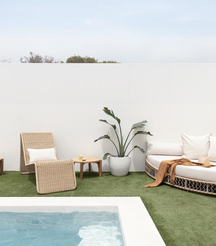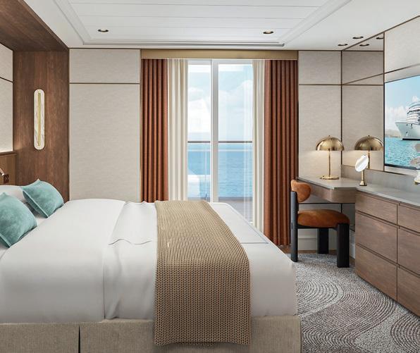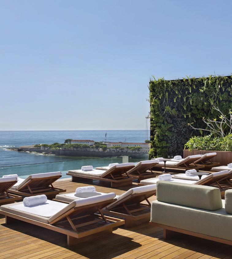 Coastal-chic decor and a palm- and cabanalined outdoor pool complete the vision.