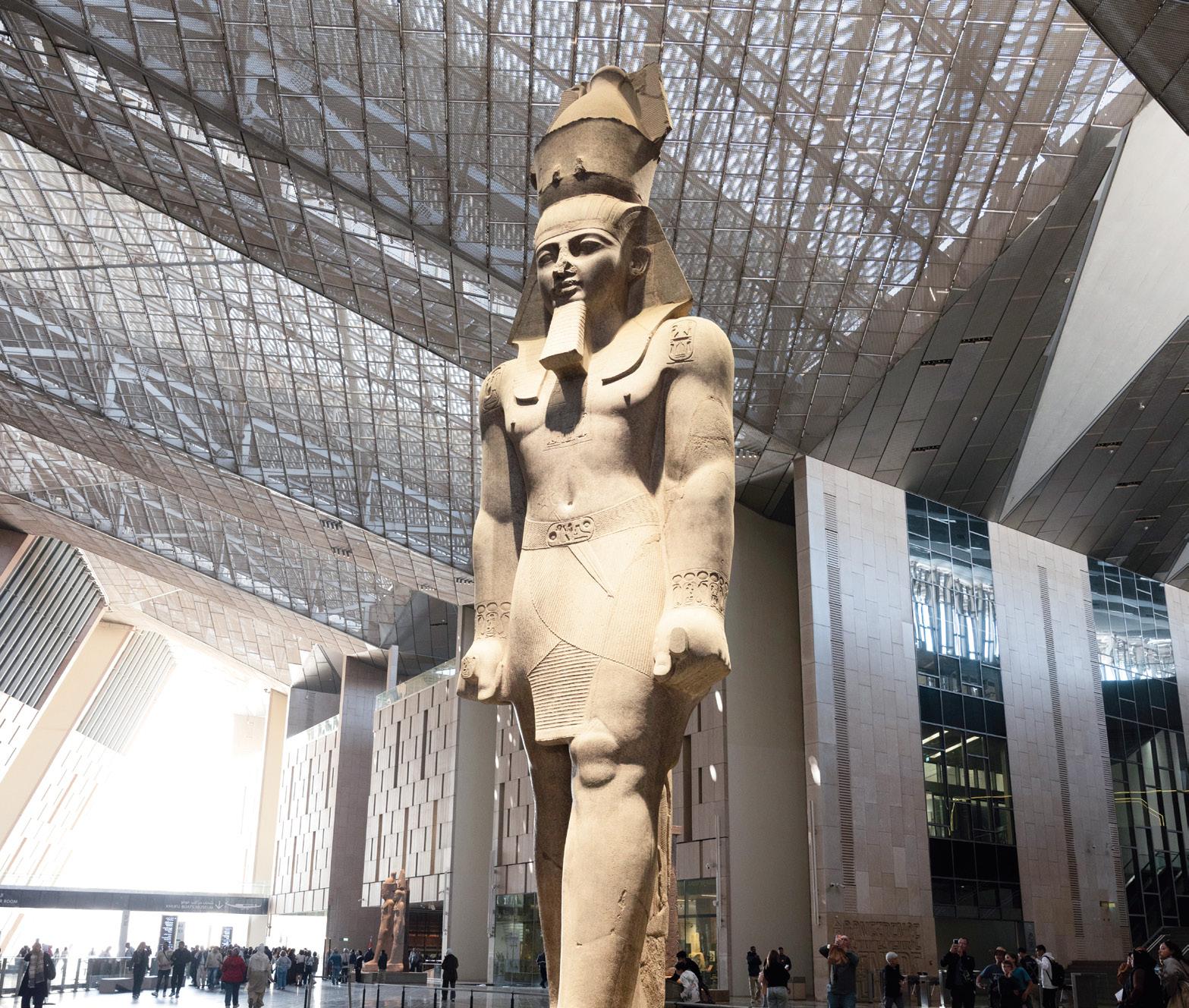 Egypt’s most ambitious pharaoh makes a fitting concierge to the entrance hall of Cairo’s Grand Egyptian Museum. Opened in November 2025, the museum has already earned the moniker the “Fourth Pyramid of Giza”: originally announced in 1992, the project cost over US$1 billion and has survived revolution, currency crises and a global pandemic. Like the Great Pyramid of Giza that came five millennia before, the Grand Egyptian Museum took 20 years to construct and now stands as one of the country’s architectural triumphs.