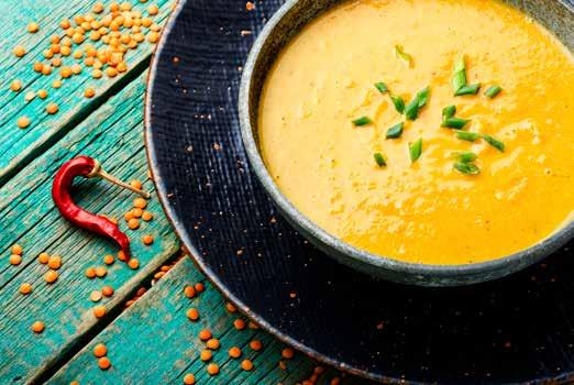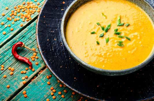• Serveer de soep in een kom of bord met een flinke klodder zure room en/of een schijf verse citroen.