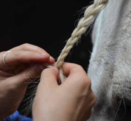 In de stallen maken we knotjes en vlechtjes in de manen.