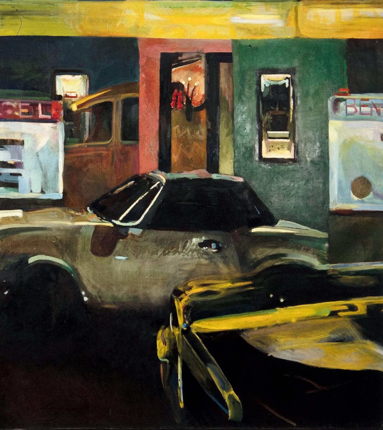 Aber die Erinnerung an eine großformatige Kohlezeichnung drängt sich dazwischen, ein mar kantes Beispiel für die figürlichen, gegenständlich ausgeprägten Bilder, wenige Jahre später ent standen. Sie ist inspiriert von einem Environment von Edward Kienholz, seiner „Beanery“, 1965, die sich im Stedelijk Museum in Amsterdam befindet.