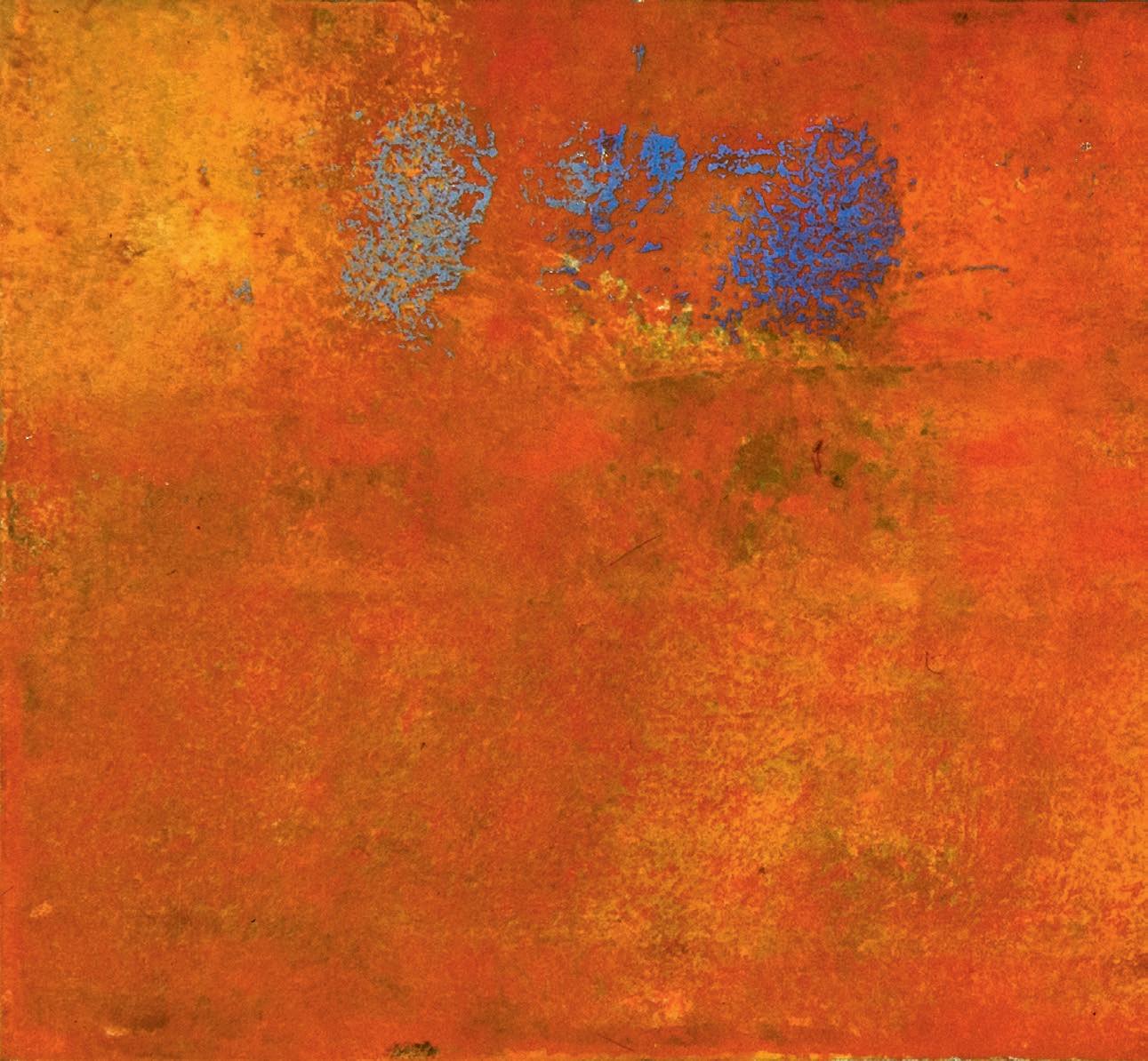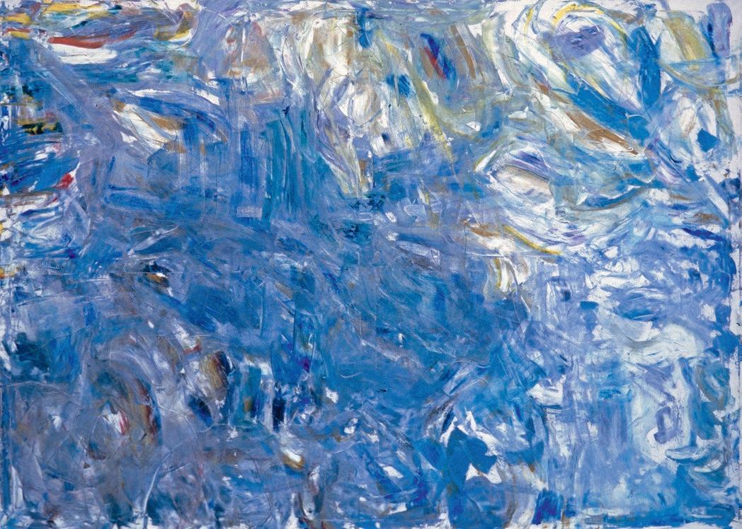 Das Bild „Platons Himmel“ zieht Aufmerksamkeit in besonderem Maße auf sich: blauendes Blau, wie könnte man das anders sagen? Inspiriert sicher durch griechischen Himmel, den der Maler immer wieder auf „seiner“ Insel Korfu erlebt hat. Hier im Bild ein Energie-geladenes Blau, span nungsdicht, warm, in der Schwebe über in die Tiefe gezogenen horizontalen Strichen, gebän dert, mit organisch anmutenden Strukturen für ‚Wald‘ als Horizont, davor ein kräftig gelber Licht see – ein Durchbruch und Hervortreten, dessen Ursache unsichtbar bleibt bis auf einen schwach merklichen Widerschein im Blau des Himmels, der aber ebenso gut ein solcher des Lichtsees als Reflex sein könnte. Die flachen Bandzonen, Bildgrund und Tiefe, oder Nähe und Entfernung, neh men Himmel auf, sind gleichzeitig auch Wasser, das in der unteren Blauzone sich beruhigt, ver dunkelt. Natürlich fasziniert hier auch der Titel, der eine Beziehung des Bildes zu Platon herstellt, eine anschauliche, intuitive und, strenggenommen, uneigentliche. Aber hat nicht der Malprozess selbst etwas dialogisch Platonisches? Der Malprozess ist ja selbst eine Form des Herausbildens von Zusammenhängen, die immer auf das gemeinsame Ganze bezogen sich erst gegenseitig zur Wirkung bringen – so wie hier der Lichtsee Antwort auf das energiegeladene Blau ist, das durch ihn wiederum an Höhe und Kraft gewinnt. Der gemeinsame Bezug auf das umfassend grundle gend Wirkende, aus dem heraus sich Gegenständlichkeit im Bild ‚inkarniert‘ als Logos des Bildes, ein Meta-Logos gleichsam, in dem der Logos des begrifflichen Erkennens in einen Zustand des Wachtraums versetzt ist, als pure Form mit körperhaft sinnlicher Wahrnehmung verbunden. So umspannt der Bildlogos die gestalterische subjektive Seite mit der begegnenden natürlichen Gegenstandsseite in einem umfassenden Logos der Leiblichkeit.