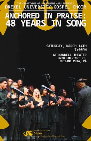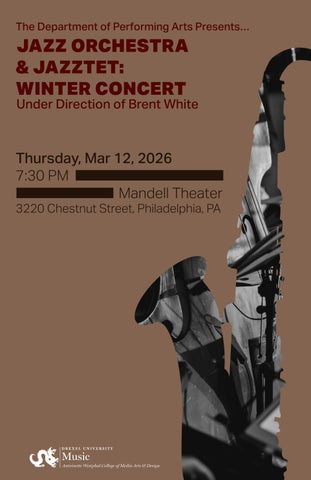The Antoinette Westphal College of Media Arts & Design at Drexel University is dedicated to the multidisciplined education of students in the areas of design, media and the performing and visual arts. Westphal offers 16 undergraduate majors, 28 undergraduate minors and seven graduate programs housed in award-winning, technologically-enhanced facilities including, two performing arts theaters, a film screening room, an art gallery, a notable collection of over 30,000 historic costumes, a record label, and a world-class music studio. Westphal values a studio approach to classes, which are taught by industry-leading faculty who are at the top of their diverse disciplines. Drexel’s renowned cooperative education program (Co-op) incorporates six months of professional experience into the curriculum for all undergraduate students. Students produce sophisticated work through creative, multi-disciplinary practices, which provides meaningful shared experiences that promote individual and communal growth. Eleven of Westphal’s programs enjoy national rankings, and Westphal is ranked one of the best Design & Applied Art schools in the nation. This ISSUU is just an example of the extraordinary work that the Westphal community creates. To learn more about the college, visit drexel.edu/westphal.