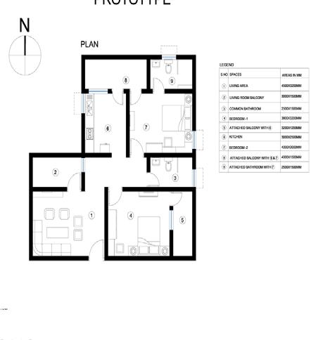 SECOND FLOOR PLAN (TWO SHARING ROOMS )