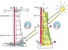 Stack effect is air movement caused by thermal differences. Higher-temperature air is less dense than cooler air. As the warmer air rises, it creates a pressure difference, with lower pressure below and higher pressure above. In buildings during the winter, the lower pressure allows cooler air from outside to move into the bottom floors. The temperature of the cooler air starts to increase, continuing the cycle. During summer or in warmer climates, the stack effect is reversed. The hot air outside enters the upper portion of the cooler building and creates a draft down.