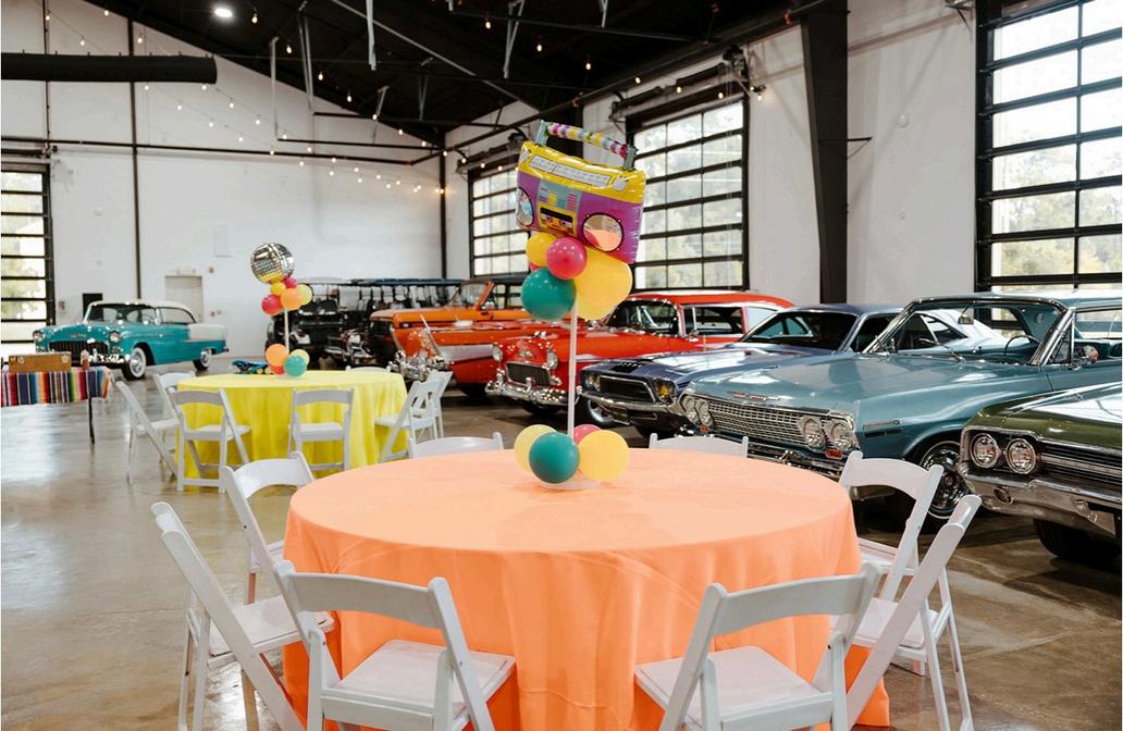 Depending on your desired event vibe, we can stage the cars various ways to bring the space closer or make it larger to accomodate your event specifics.