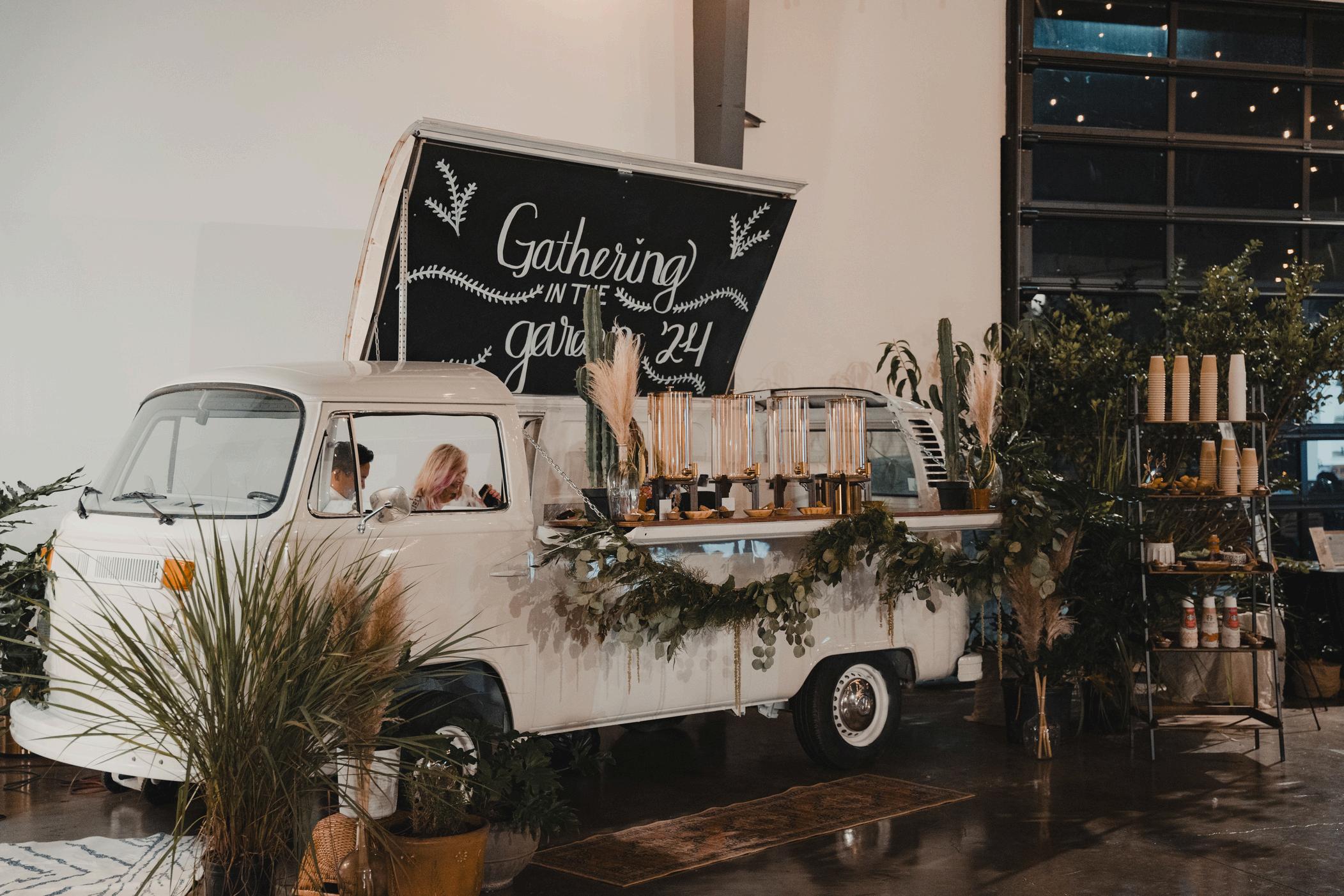 At a $1000 value if you rented this on your own, our custom made 1973 Bus Bar has a raised roof for bartenders to operate inside as well as the side folds down to serve drinks to your guests! Decorating it up like shown here always pleases guests!