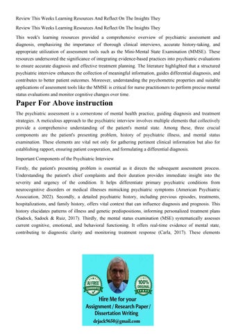 Review This Weeks Learning Resources And Reflect On The Insi