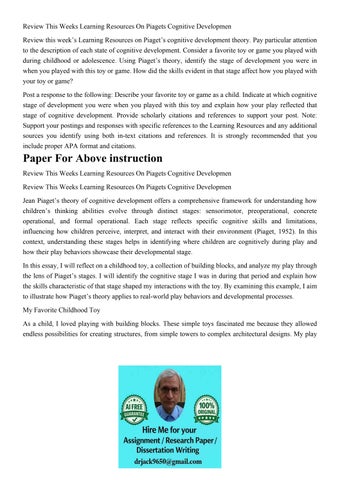 Review This Weeks Learning Resources On Piagets Cognitive De