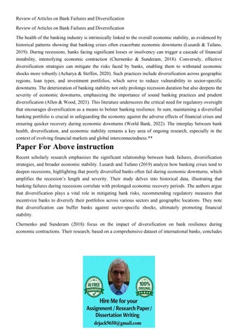 Review of Articles on Bank Failures and Diversification Revi