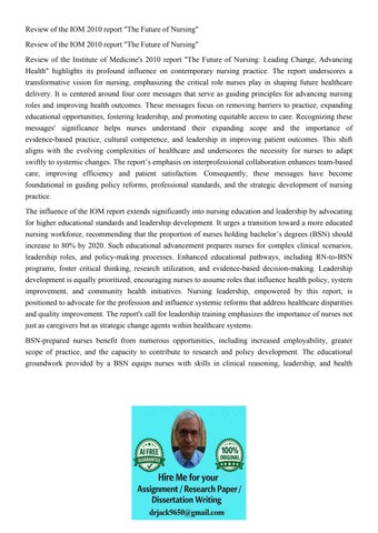 Review of the IOM 2010 report "The Future of Nursing" Review
