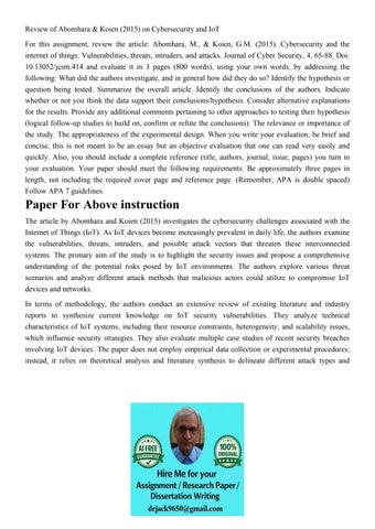 Review of Abomhara & Koien (2015) on Cybersecurity and IoT F