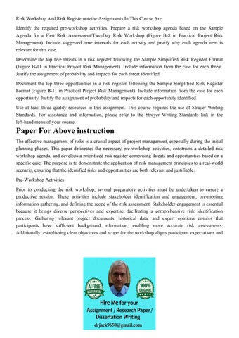 Risk Workshop And Risk Registernotethe Assignments In This C
