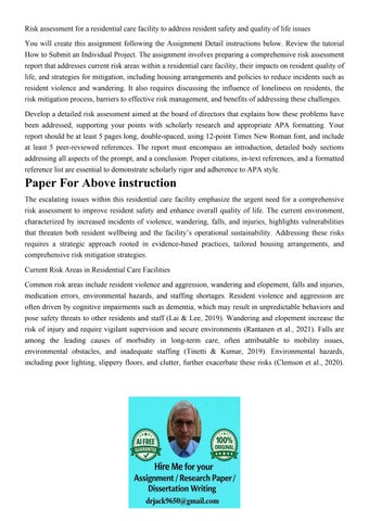 Risk assessment for a residential care facility to address r