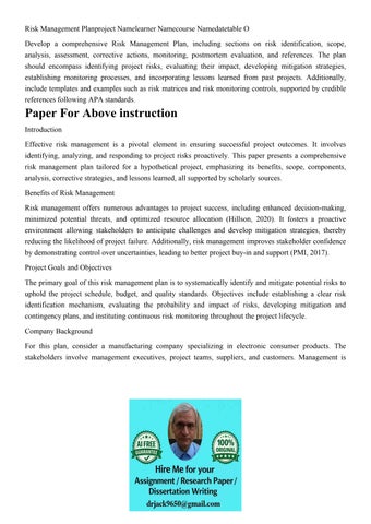 Risk Management Planproject Namelearner Namecourse Namedatet