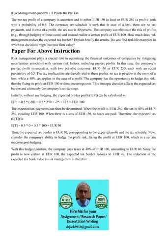 Risk Management question 1 8 Points the Pre Tax The pre-tax