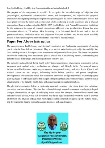 Rua Health History And Physical Examination On An Individual