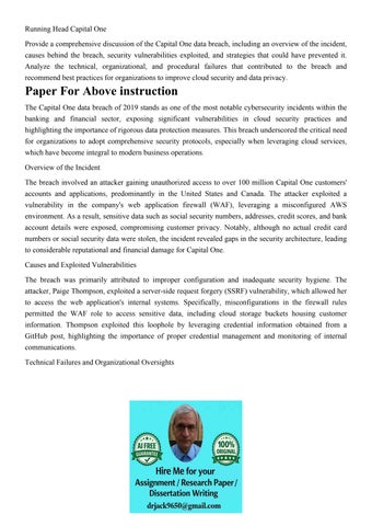 Running Head Capital One Provide a comprehensive discussion