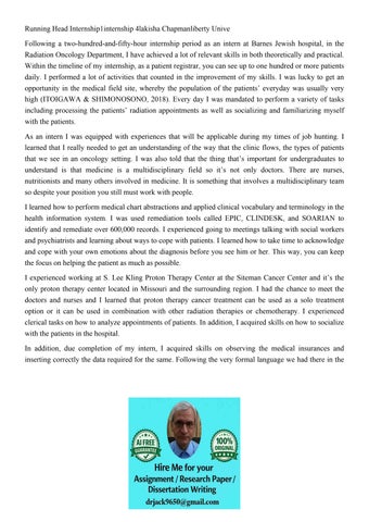 Running Head Internship1internship 4lakisha Chapmanliberty U