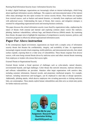 Running Head Information Security Issues 1information Securi